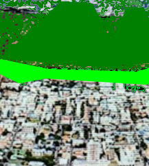 なにかで見たことがある風景で(アフリカだったかな?)山の下側平地を数メートル木で緑地化し
