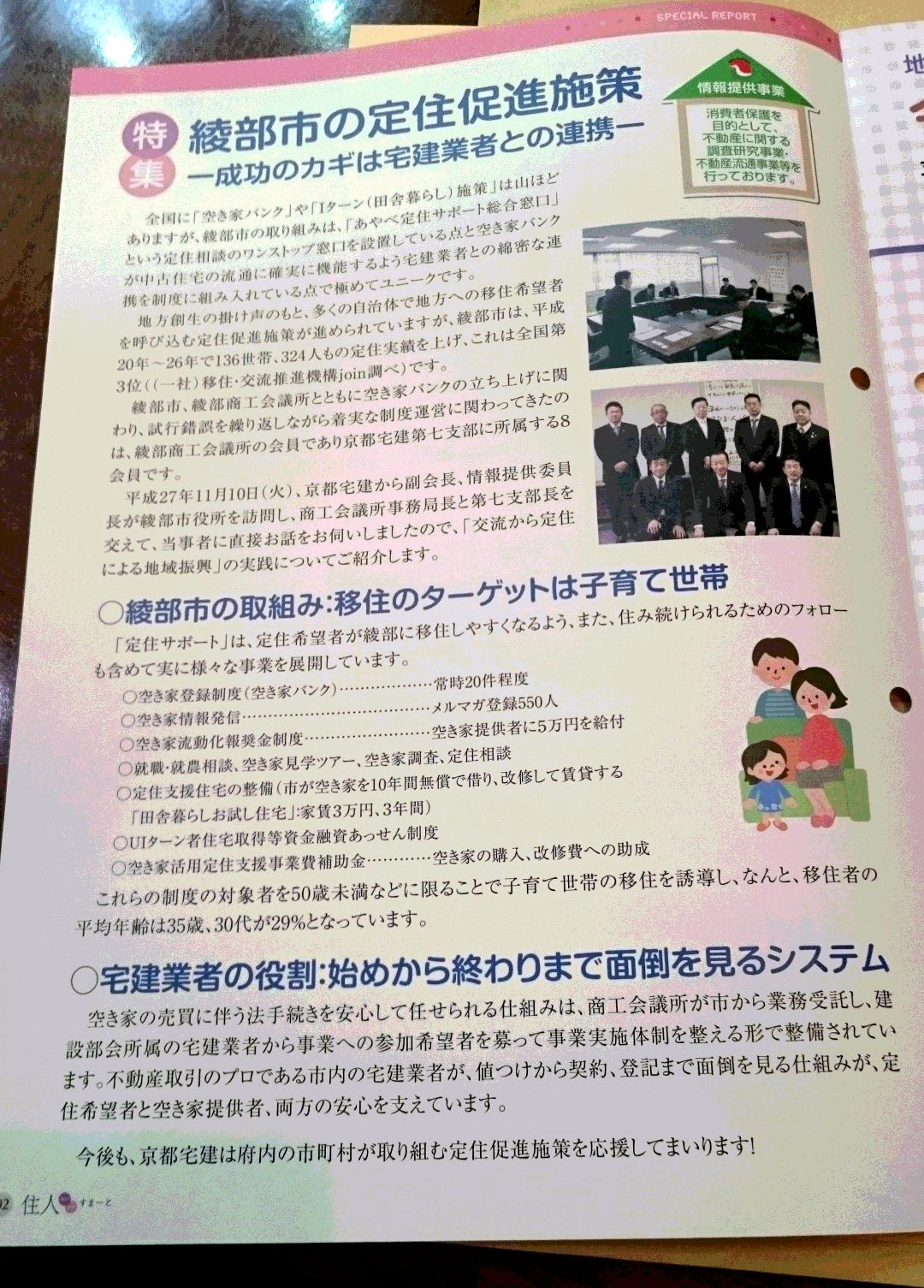 京都府内の宅建協会全会員に配布される広報誌に綾部市の定住促進について触れて